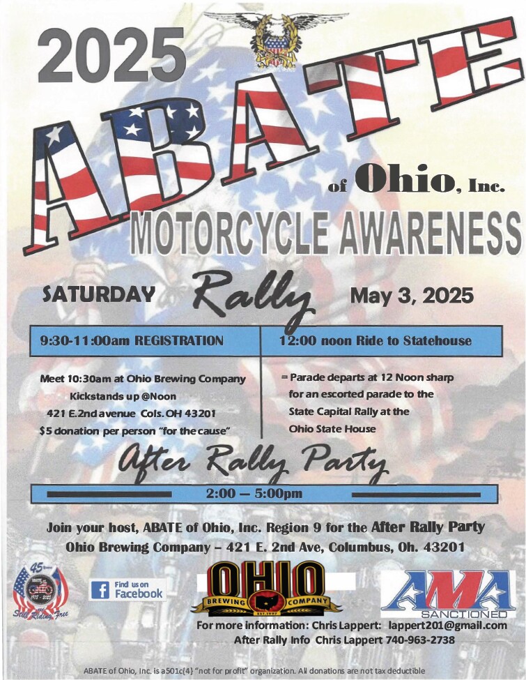ABATE of Ohio is a grassroots organization that acts as an advocate at the local, state and federal level regarding issues affecting motorcycles and motorcycling. ABATE of Ohio works with legislative, executive and judicial bodies as well as other private and public groups to preserve motorcyclists rights.