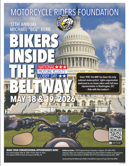 The 17th Annual Michael “Boz” Kerr Bikers Inside the Beltway is the ONLY National Motorcycle Lobby Day held in our nation’s Capital. Motorcyclists from around the country ride to D.C. to help educate Members of Congress about the issues facing motorcyclists today. This event will be held Monday, May 18 and Tuesday, May 19, 2026. Contact Ed Schetter or Kolman Fuzy if you are interested in attending with the ABATE of Ohio delegation.