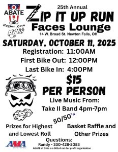 Region Zero's ZIP IT UP Run !!!! - ABATE of Ohio Inc.